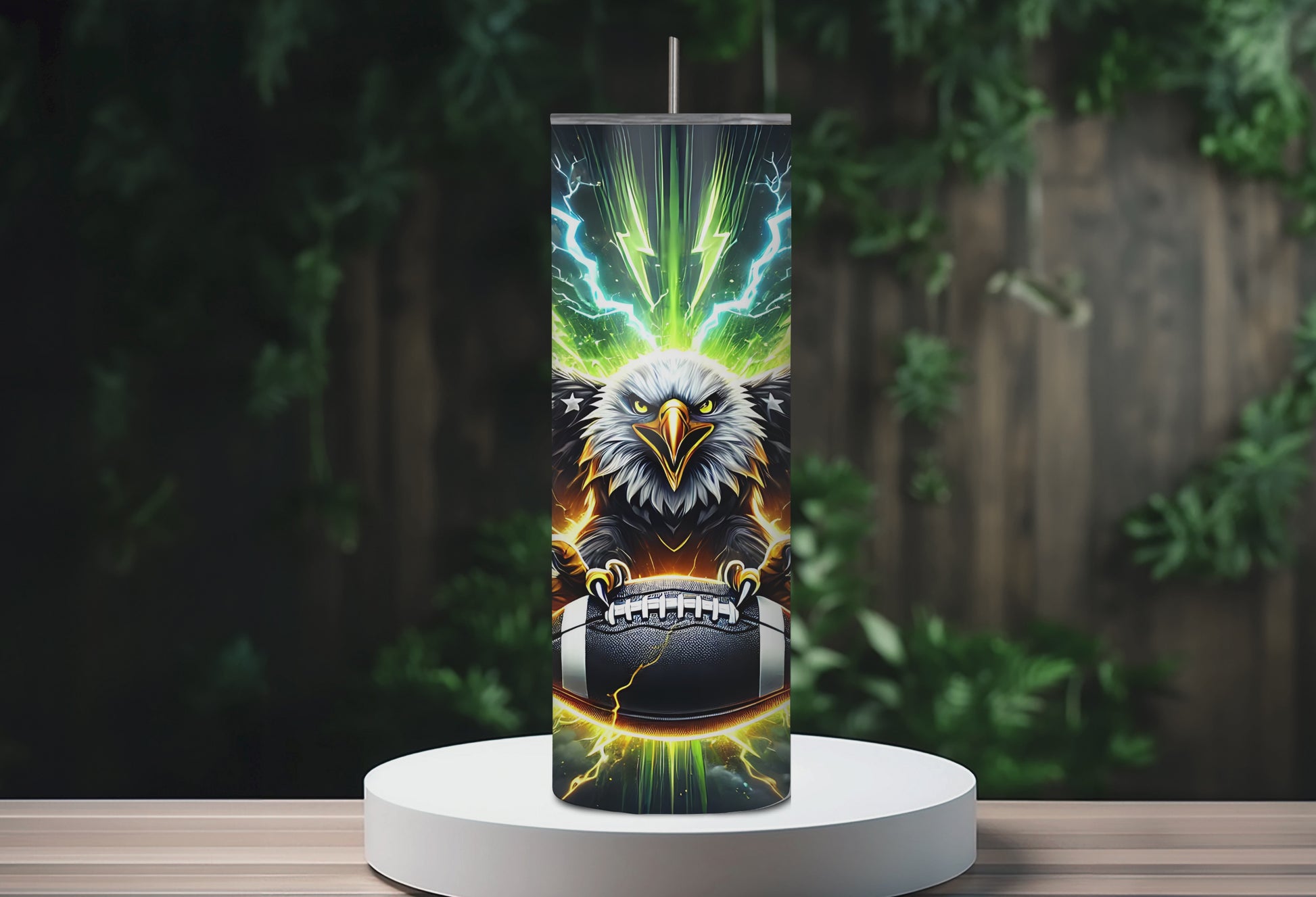 Cheer on your team in style with this 20oz stainless steel Football Eagle tumbler. Featuring a bold eagle design perfect for sports enthusiasts, this durable cup keeps your beverages at the ideal temperature whether you're tailgating, at the game, or relaxing at home. The included straw makes sipping convenient, while the sturdy stainless steel construction ensures it withstands daily use. Show your spirit and stay refreshed—this tumbler is a must-have for any fan.